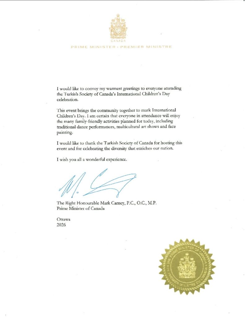 Ayrıca, programın açılış konuşmasını Turkish Society of Canada Yönetim Kurulu adına gerçekleştiren Ayşin Erim’e ve 23 Nisan Çocuk Festivali adına anlamlı konuşmasını yapan Barış Kıl’a içten teşekkürlerimizi sunarız.